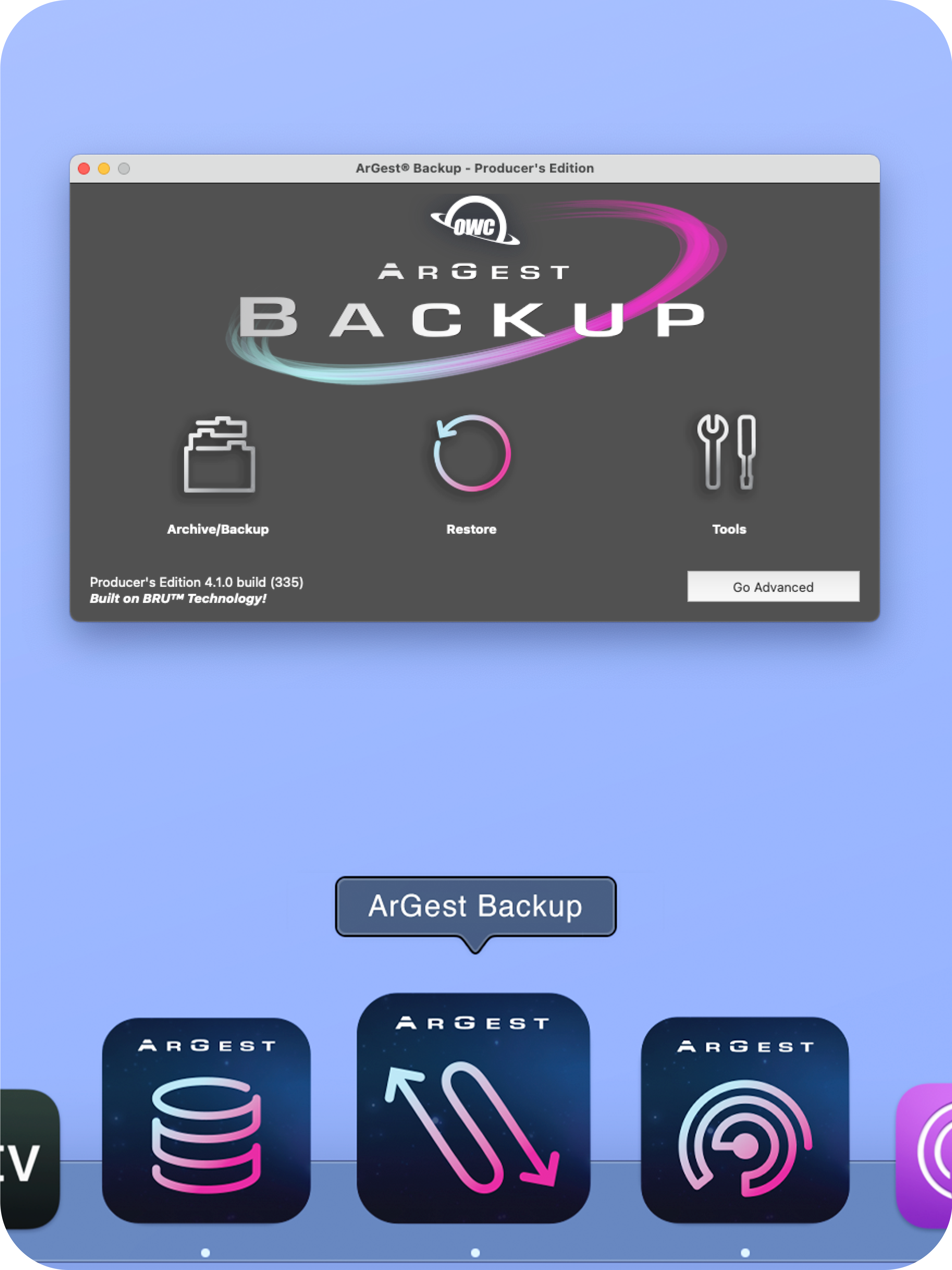Referencing the previously updated ArGest logo, re-design the App icons for ArGest Backup, Ingest Pro, and Bru Server, as well as the icons within the software.
