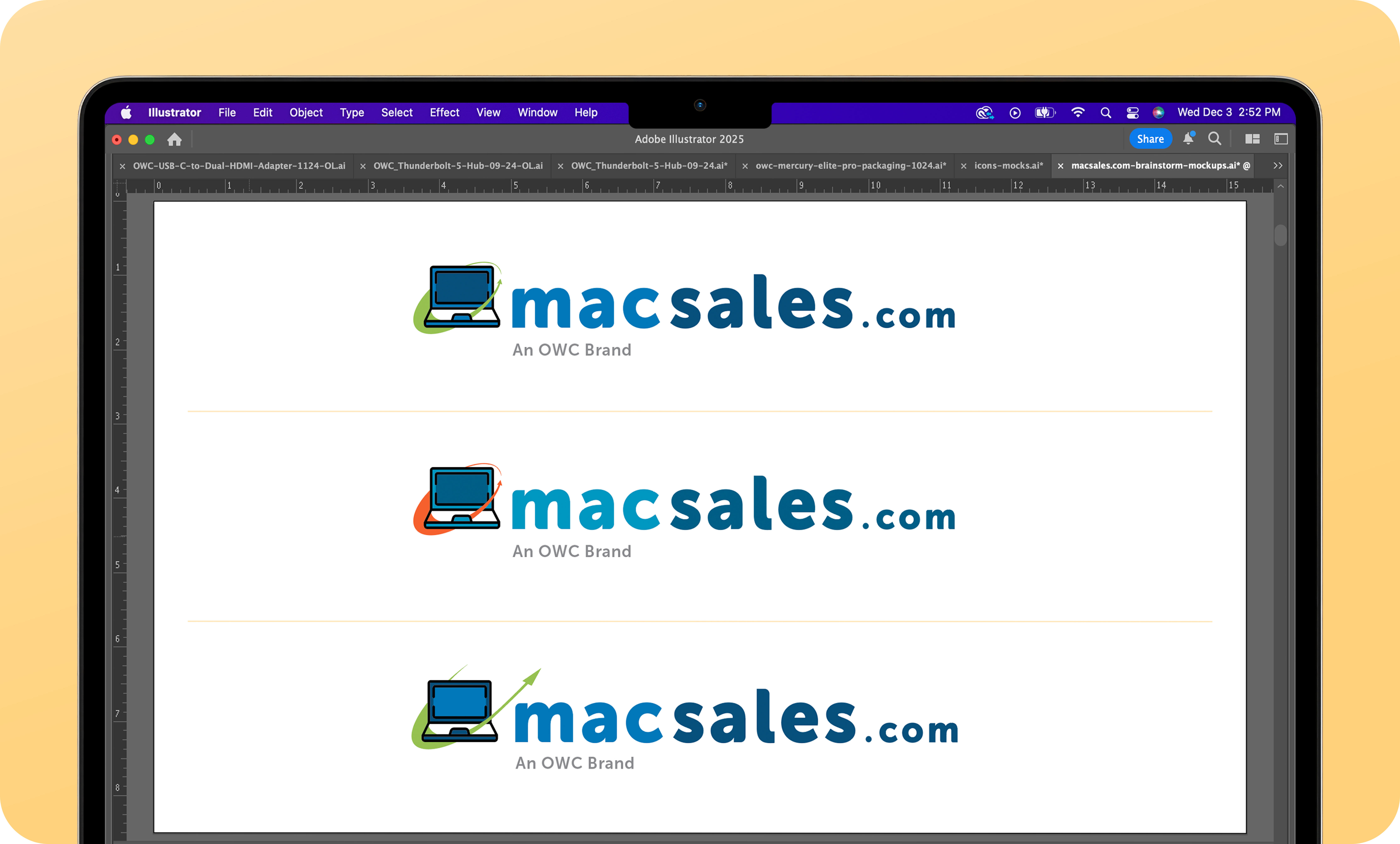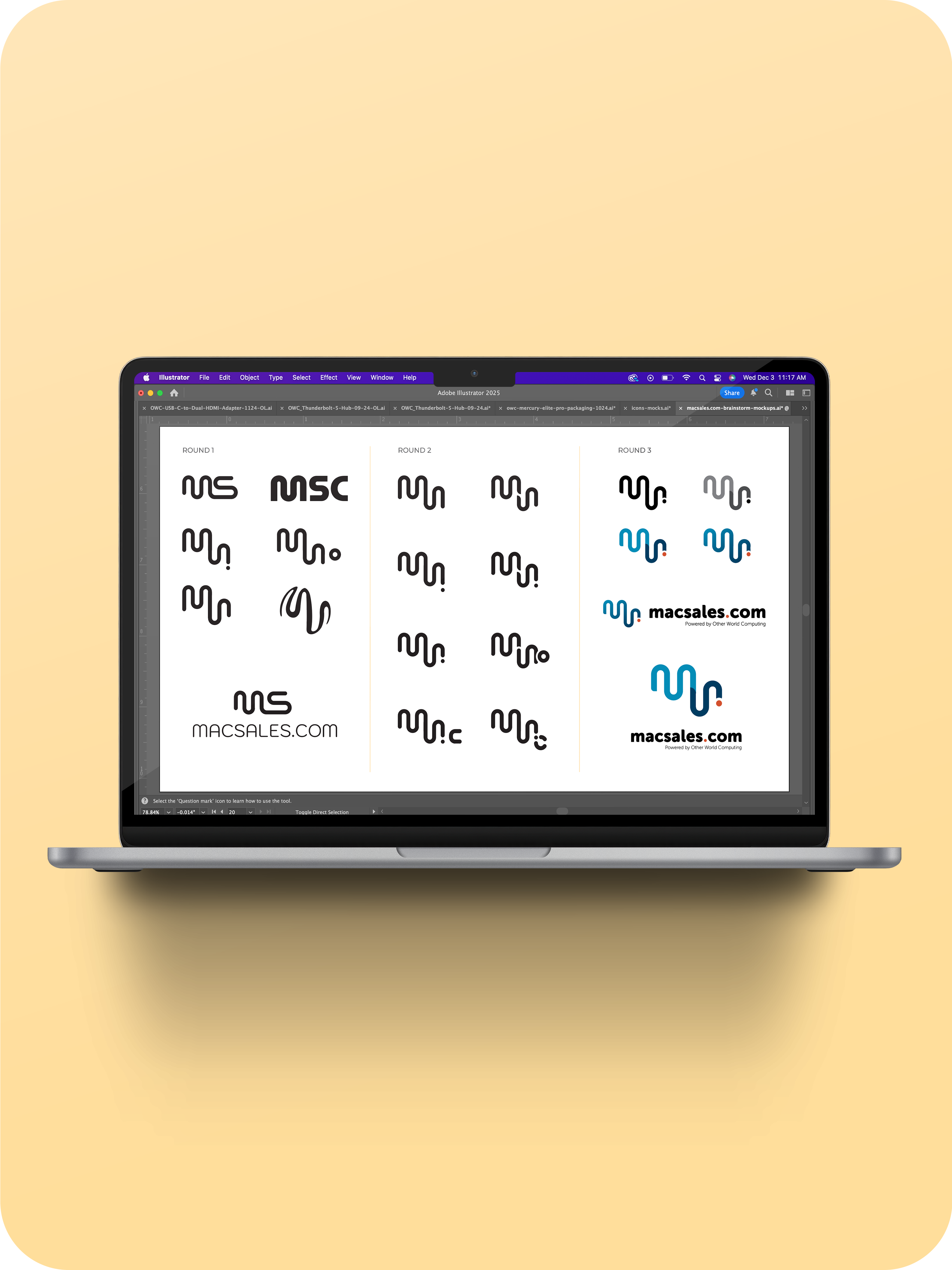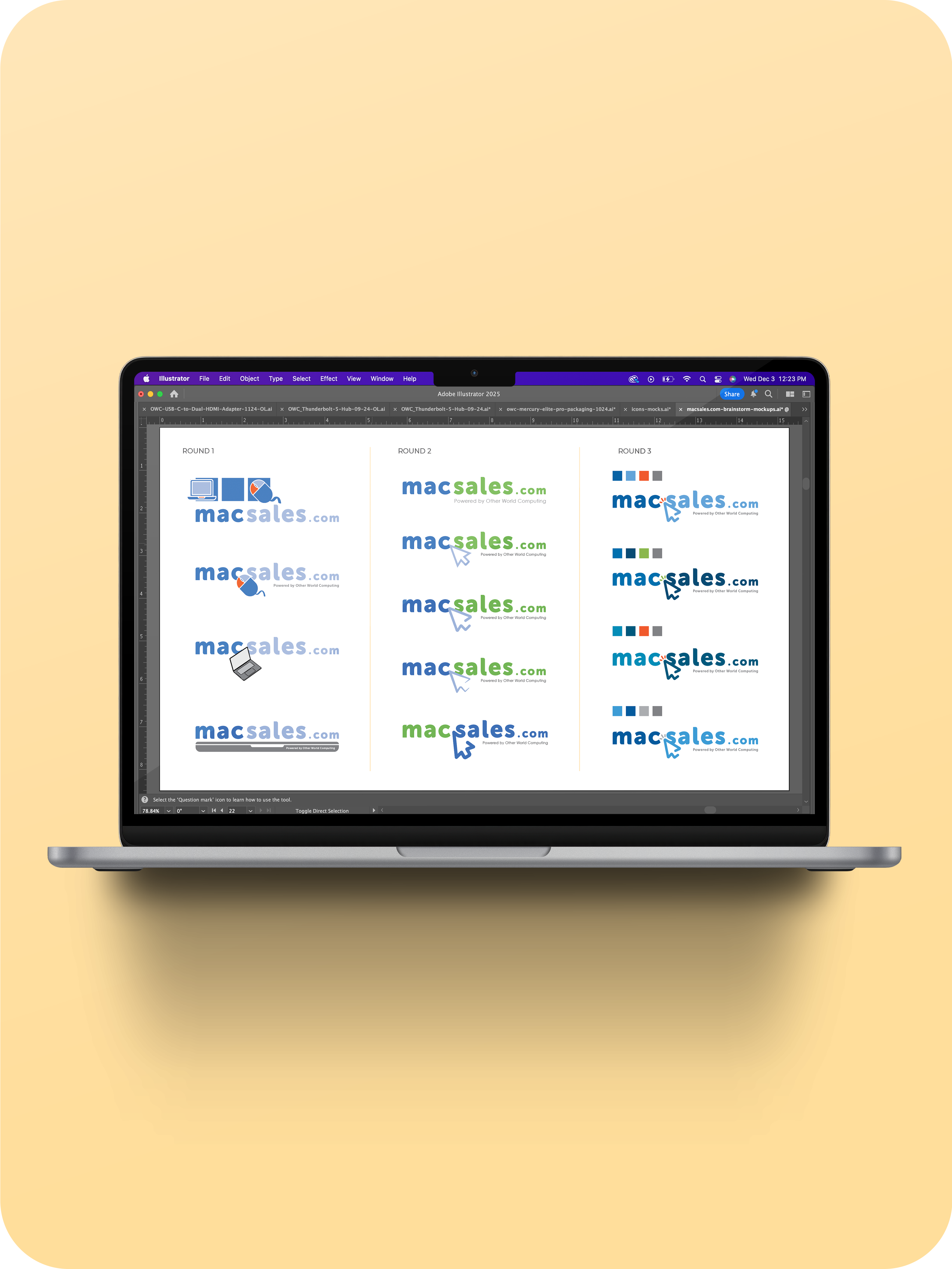 One of my teammates used a computer mouse in one of her mocks so I adapted that idea into my concepts. Then jumping adjacently to a cursor instead. With the intention of expressing the action of clicking on macsales.com. We were also encouraged to work on different color mock ups this round.